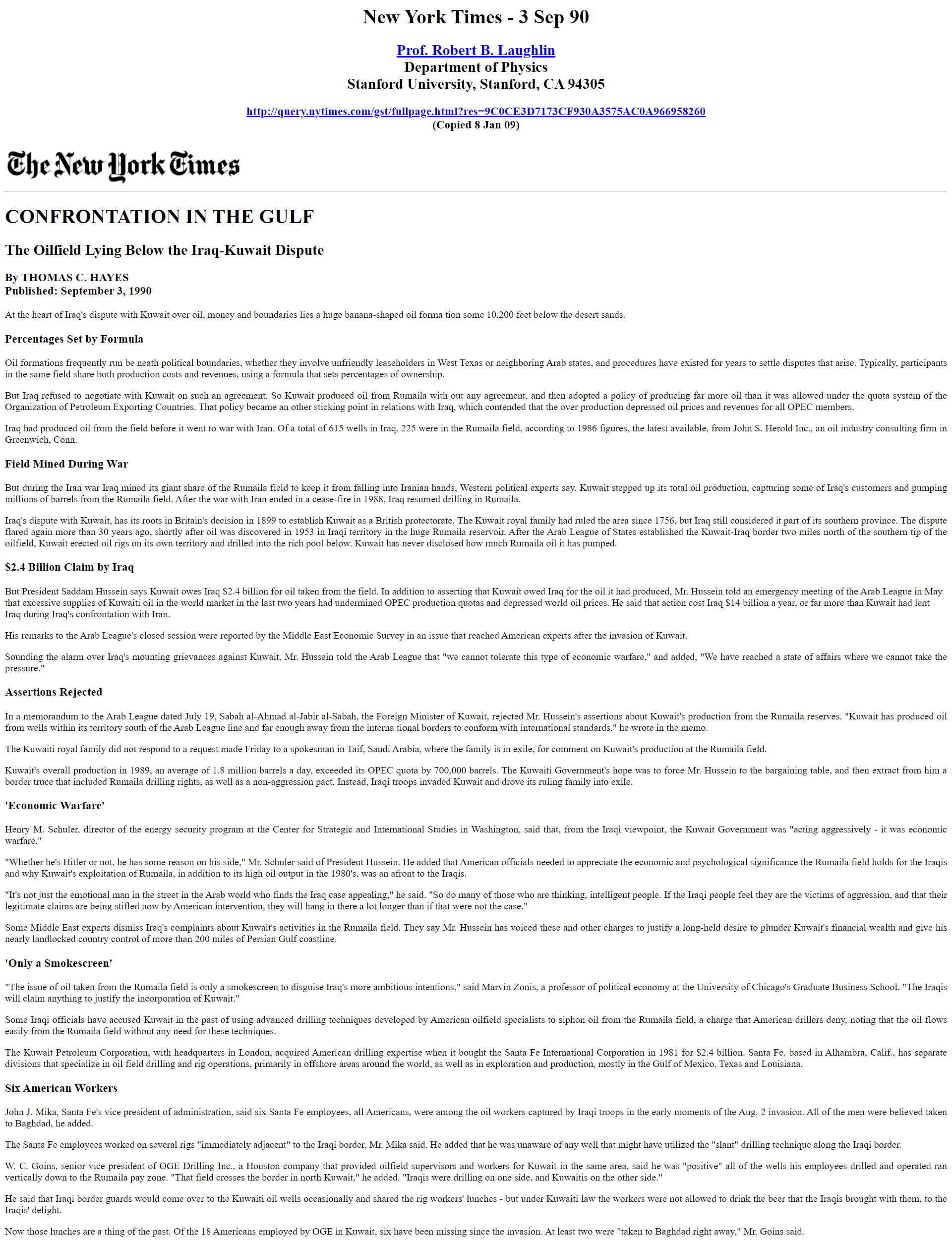 Confrontation in the Gulf - The Oilfield Lying Below the Iraq-Kuwait Dispute