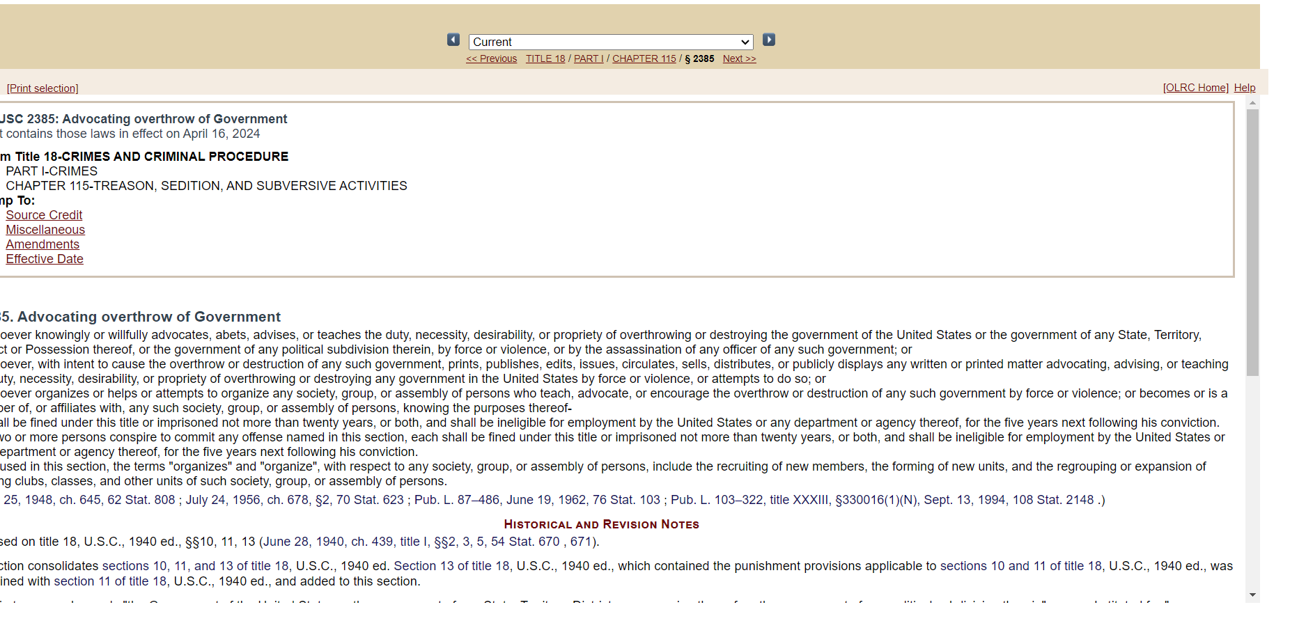 Cached Content: https://uscode.house.gov/view.xhtml?req=granuleid:USC-prelim-title18-section2385&num=0&edition=prelim#effectivedate-amendment-note