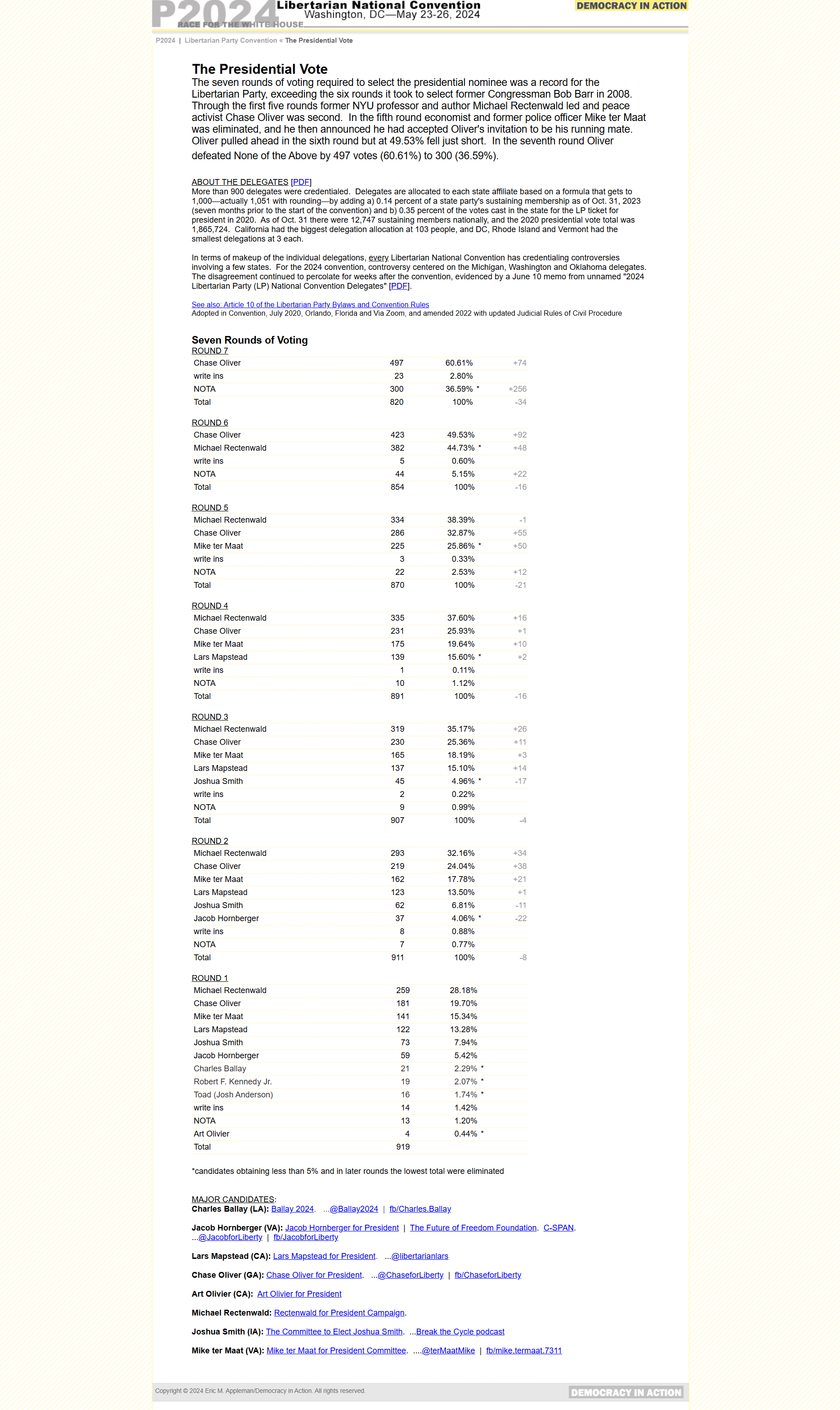 Libertarian National Convention - The Presidential Vote