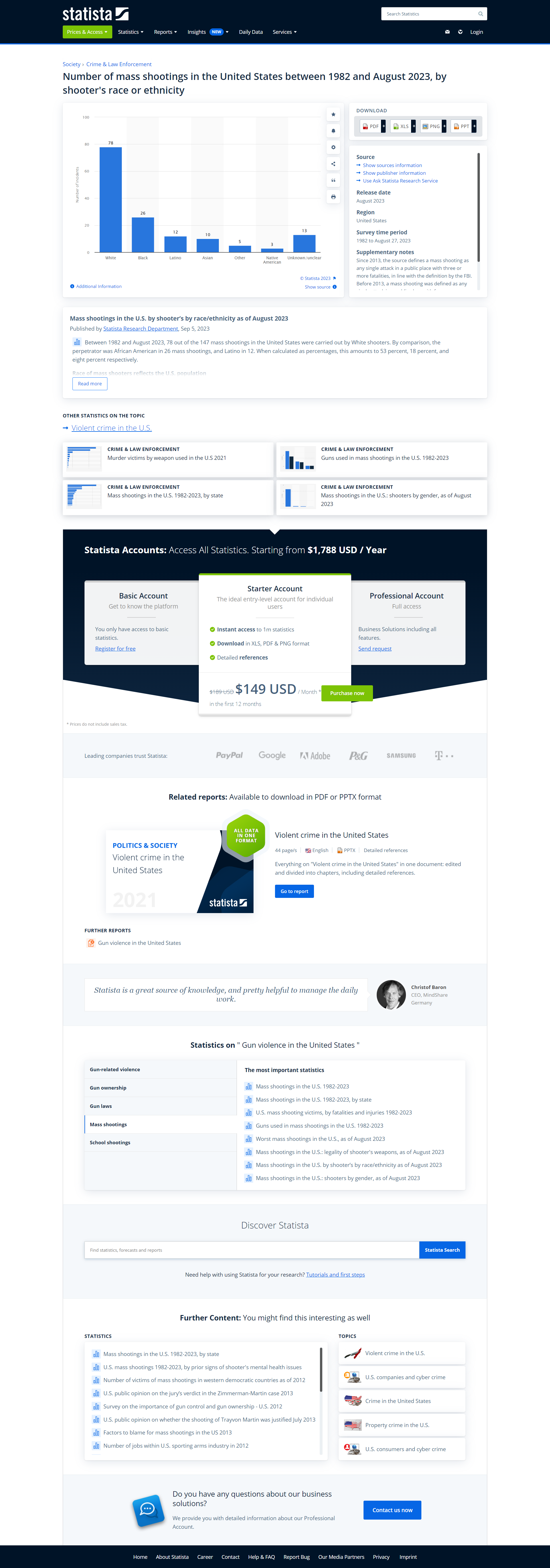 Cached Content: https://www.statista.com/statistics/476456/mass-shootings-in-the-us-by-shooter-s-race/