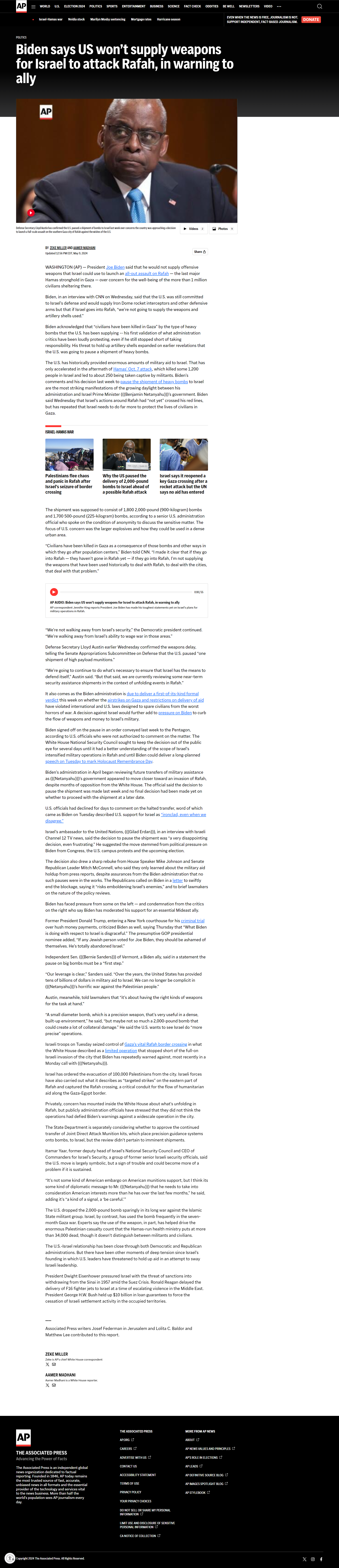 Cached Content: https://apnews.com/article/israel-weapons-shipment-us-eed365ebef0477ba74bf9848cacae4f4