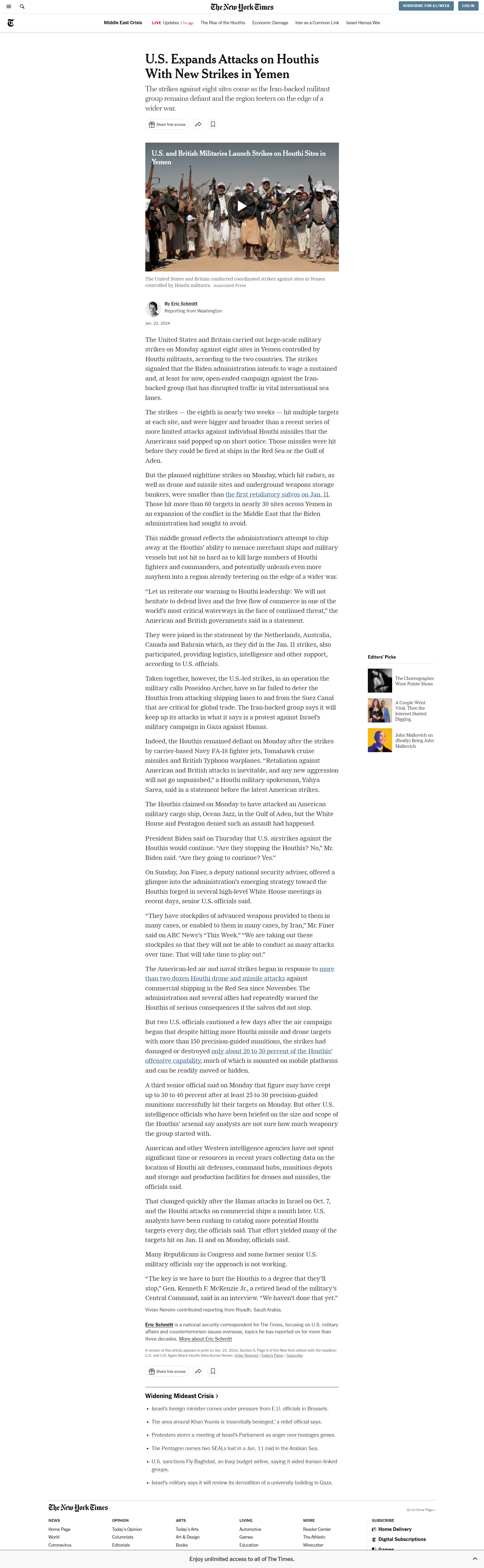 U.S. Expands Attacks on Houthis With New Strikes in Yemen