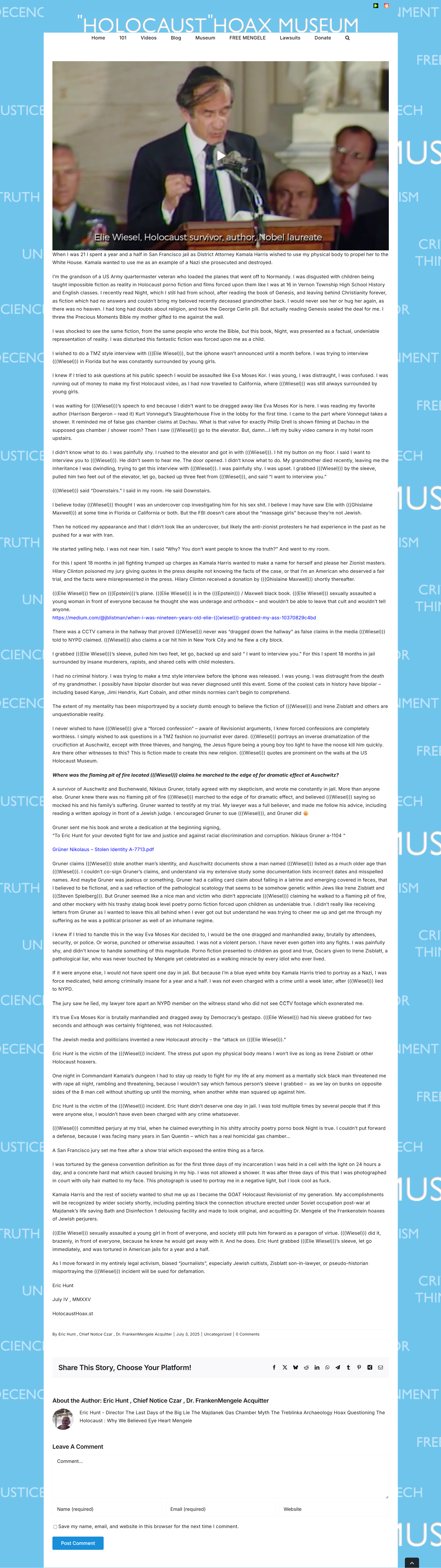 Eric Hunt's Explanation of the Elie Wiesel Event