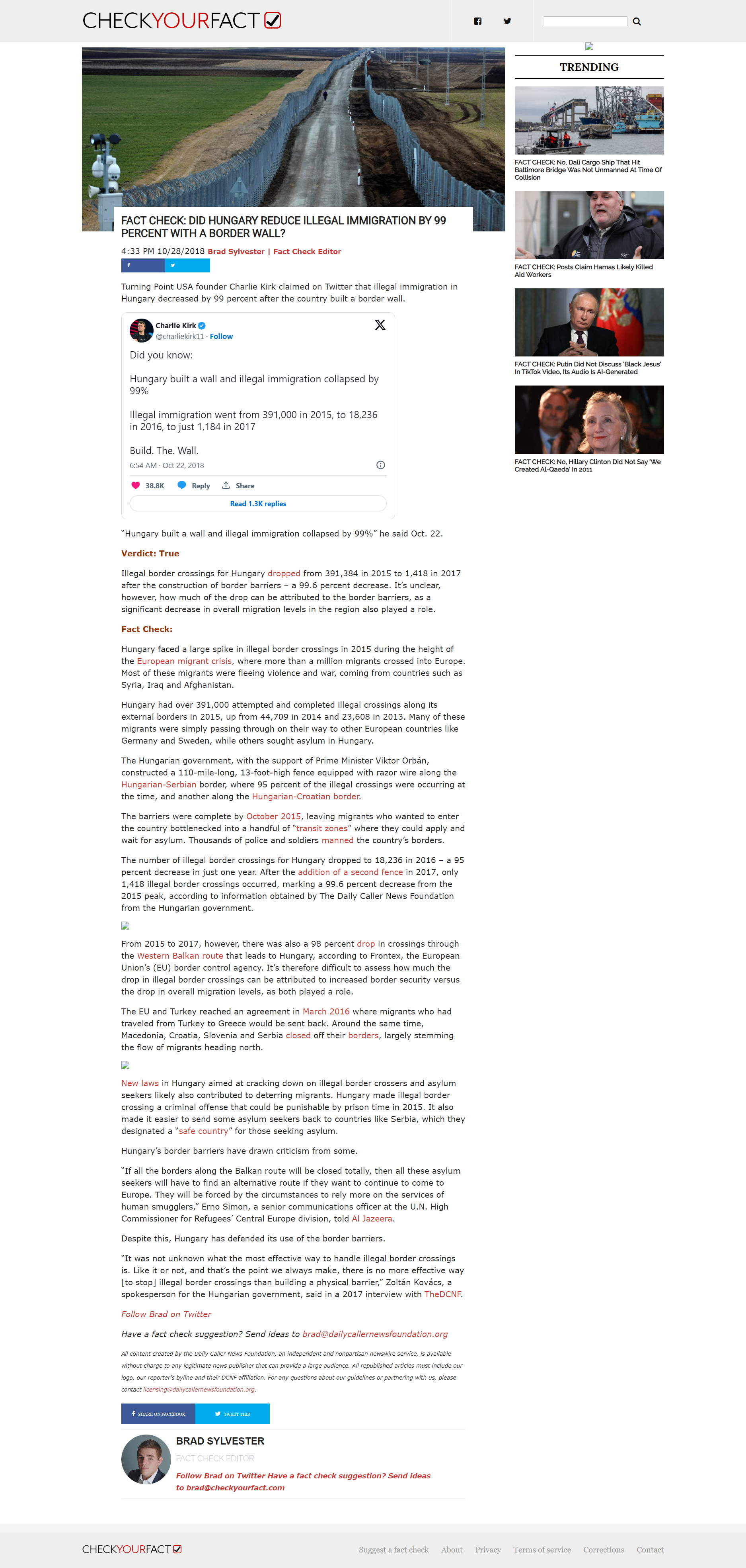 FACT CHECK: DID HUNGARY REDUCE ILLEGAL IMMIGRATION BY 99 PERCENT WITH A BORDER WALL?