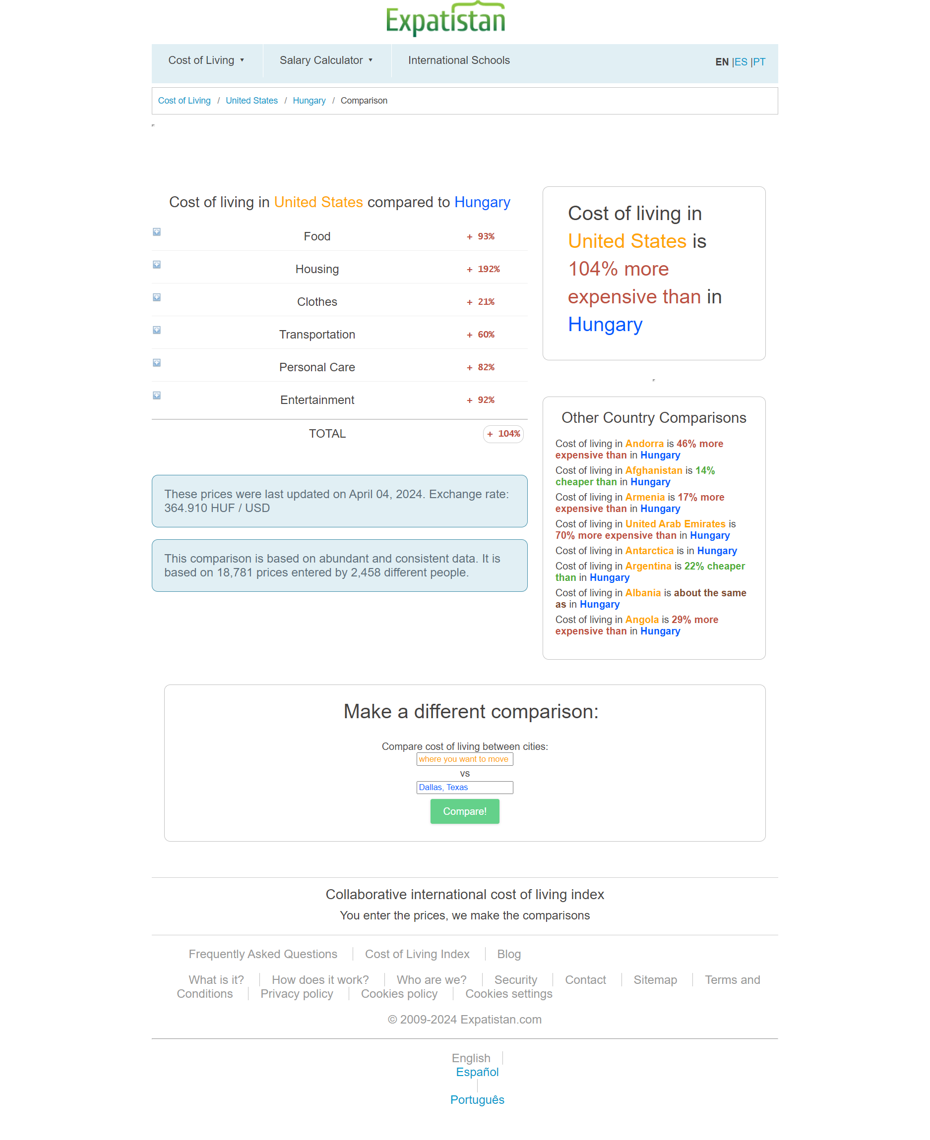 Cost of living in United States compared to Hungary