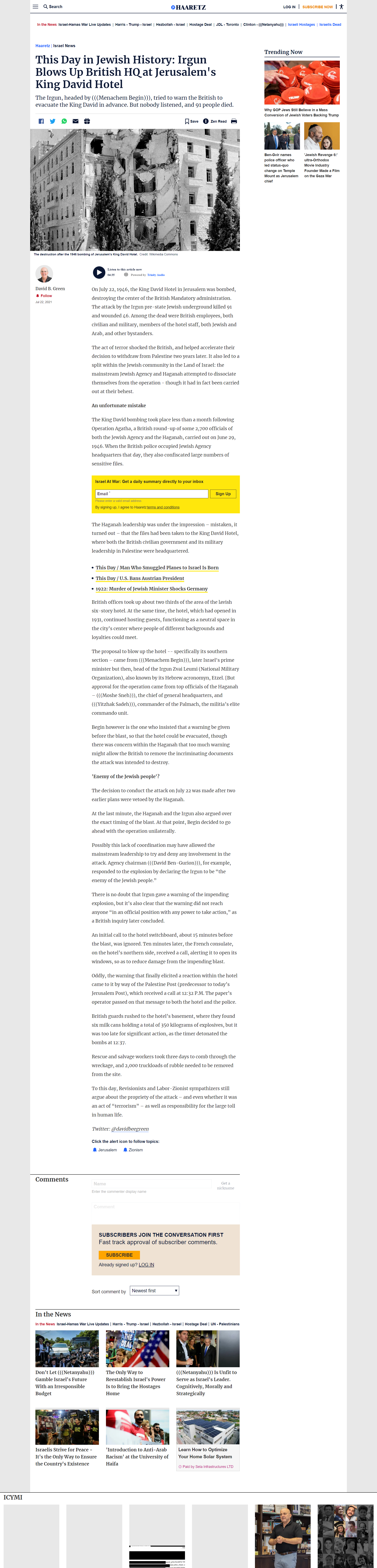 This Day in Jewish History: Irgun Blows Up British HQ at Jerusalem's King David Hotel