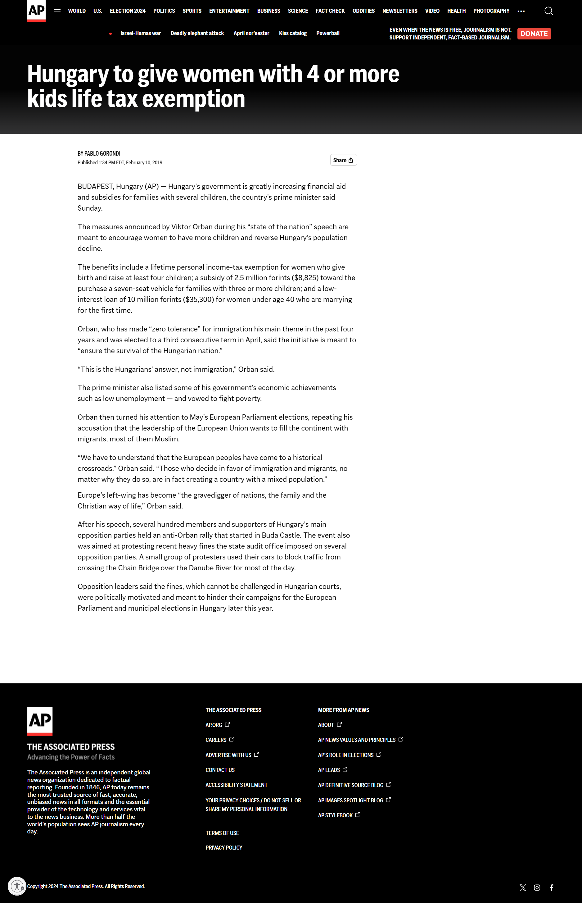 Hungary to give women with 4 or more kids life tax exemption