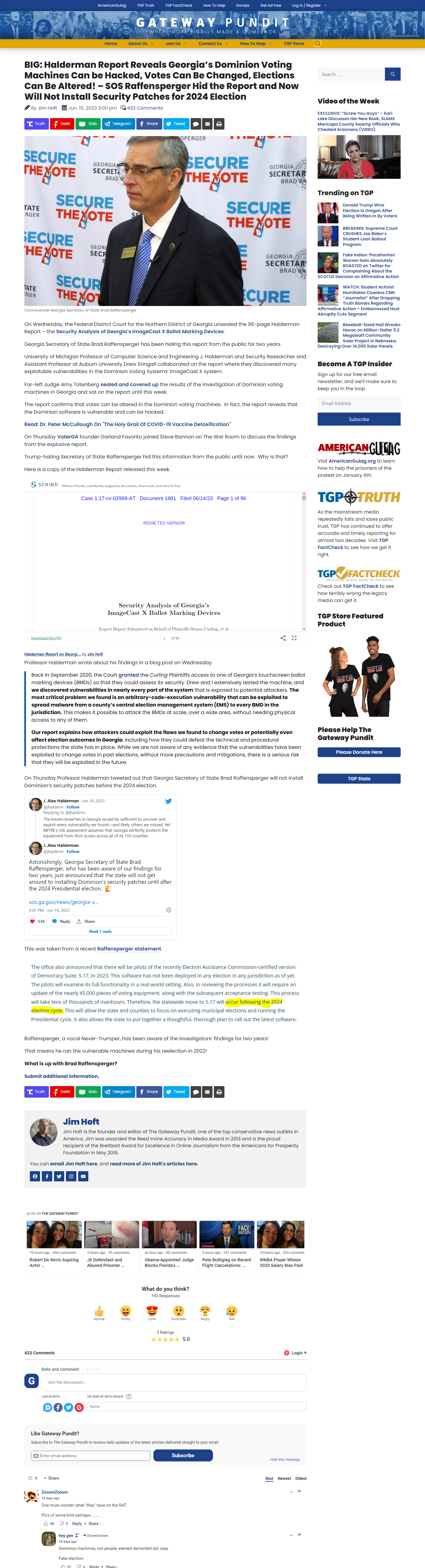 Cached Content: https://www.thegatewaypundit.com/2023/06/update-halderman-report-reveals-georgias-dominion-voting-machines/