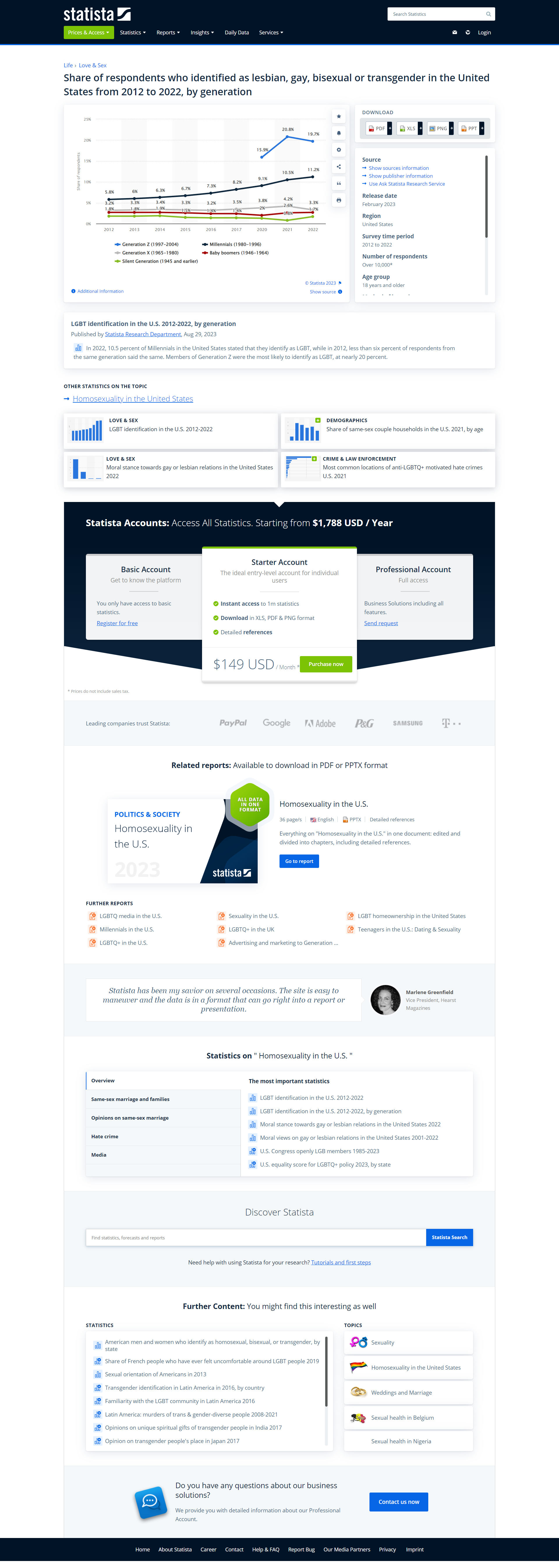 Cached Content: https://www.statista.com/statistics/719685/american-adults-who-identify-as-homosexual-bisexual-transgender-by-generation/