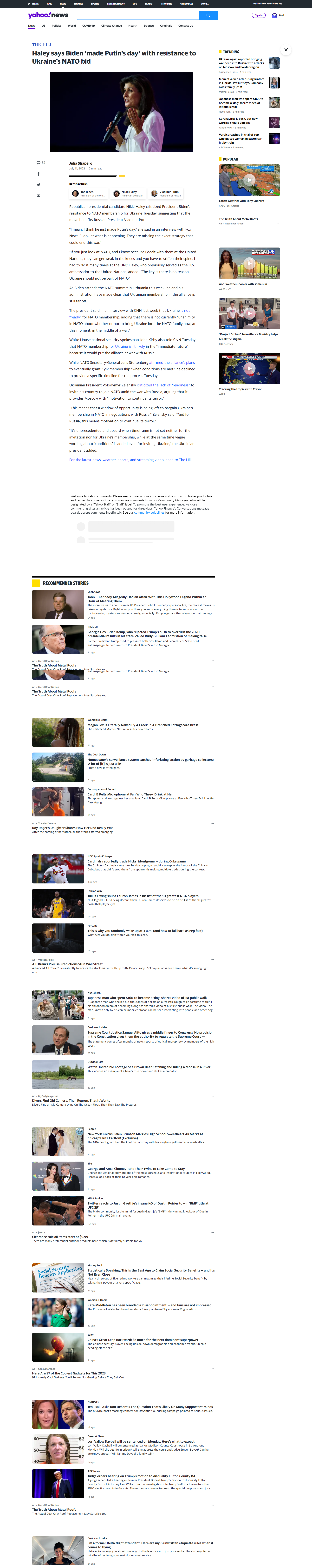 Haley says Biden ‘made Putin’s day’ with resistance to Ukraine’s NATO bid