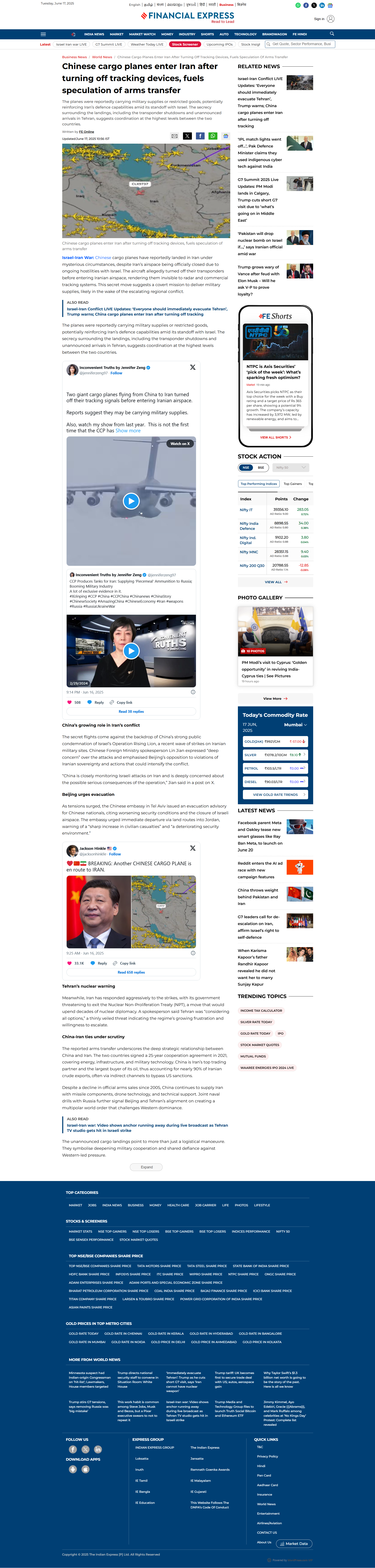 Chinese cargo planes enter Iran after turning off tracking devices, fuels speculation of arms transfer