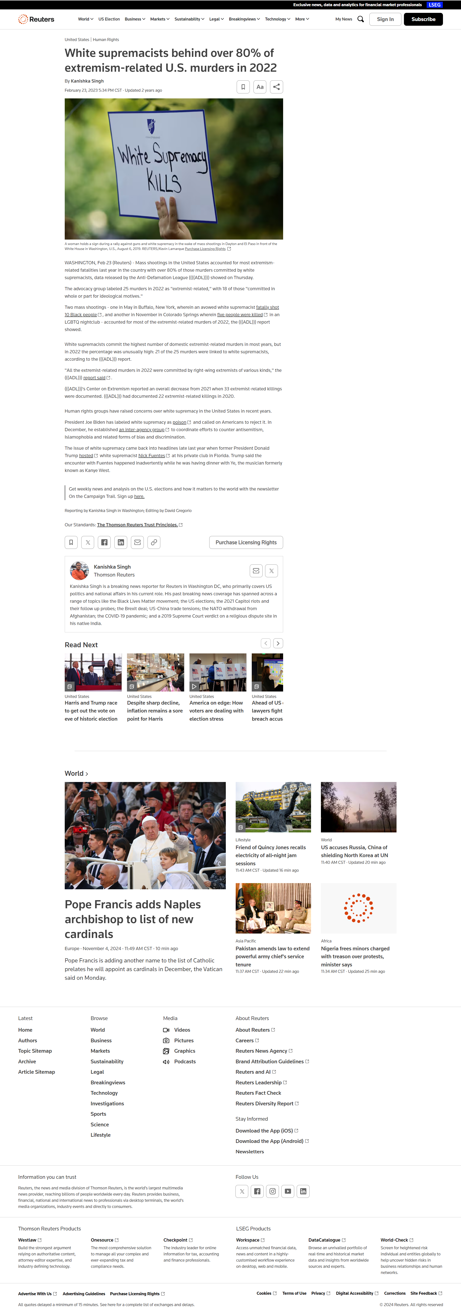 Original Url: https://www.reuters.com/world/us/white-supremacists-behind-over-80-extremism-related-us-murders-2022-2023-02-23/