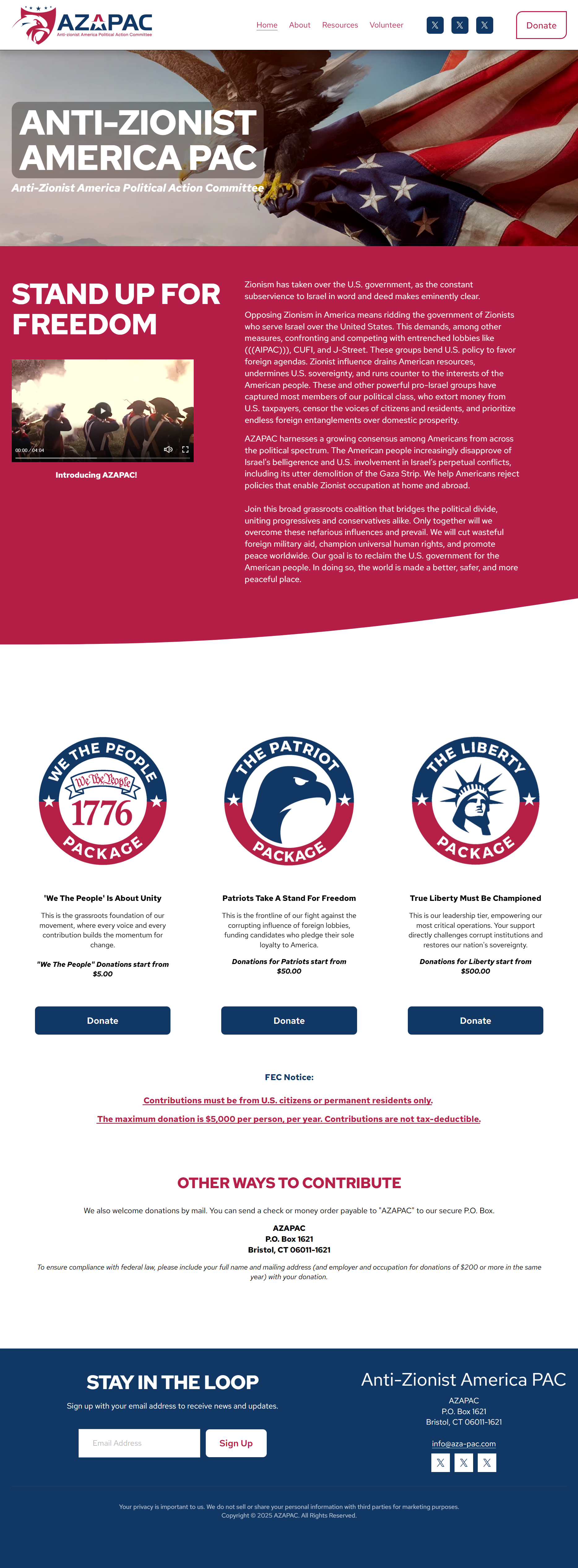 Anti-Zionist America Political Action Committee Website