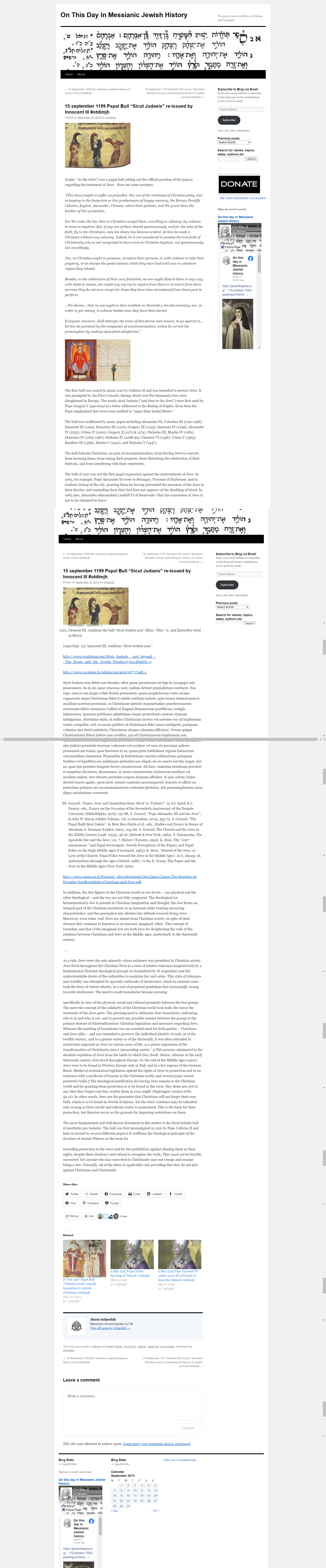 Original Url: https://jewinthepew.org/2015/09/15/15-september-1199-papal-bull-sicut-judaeis-re-issued-by-innocent-iii-otdimjh/