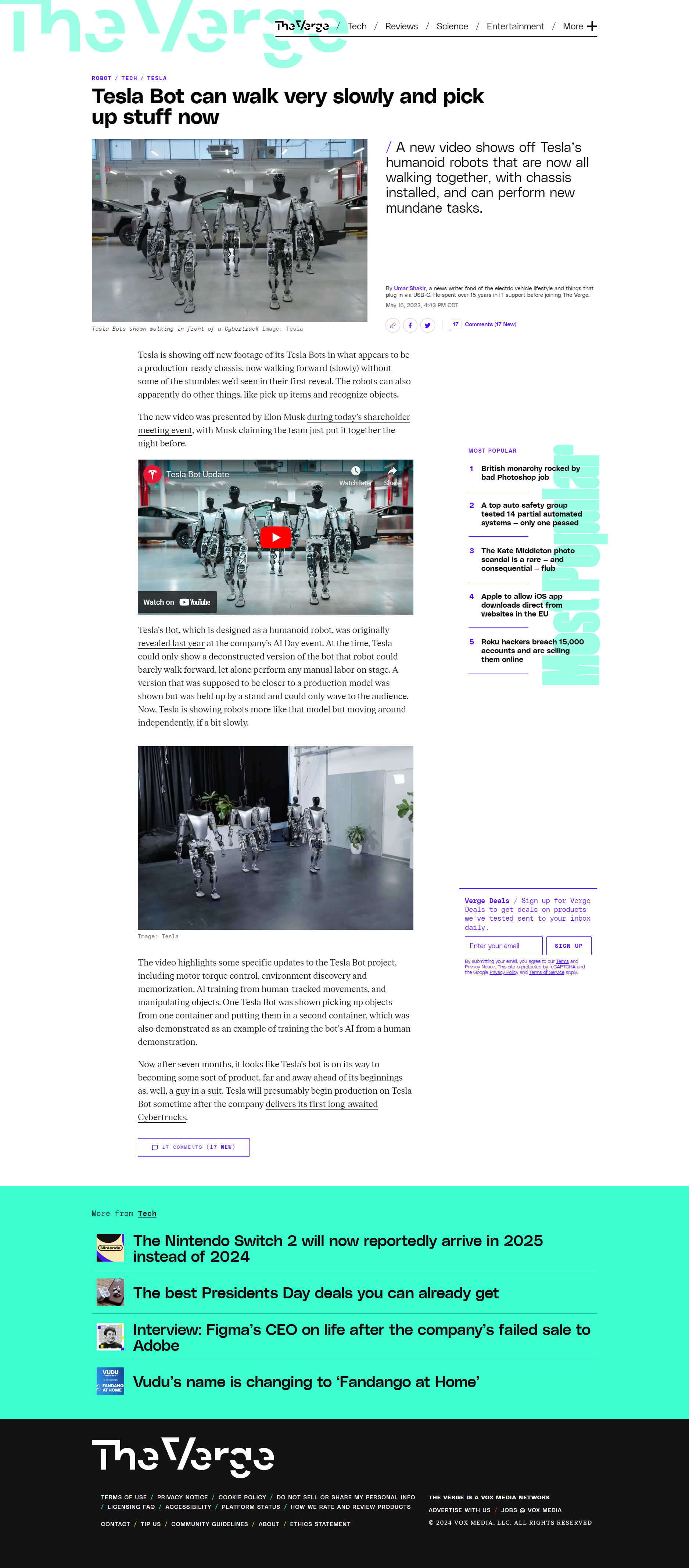 Cached Content: https://www.theverge.com/2023/5/16/23726139/tesla-robot-update-video-shareholder-meeting