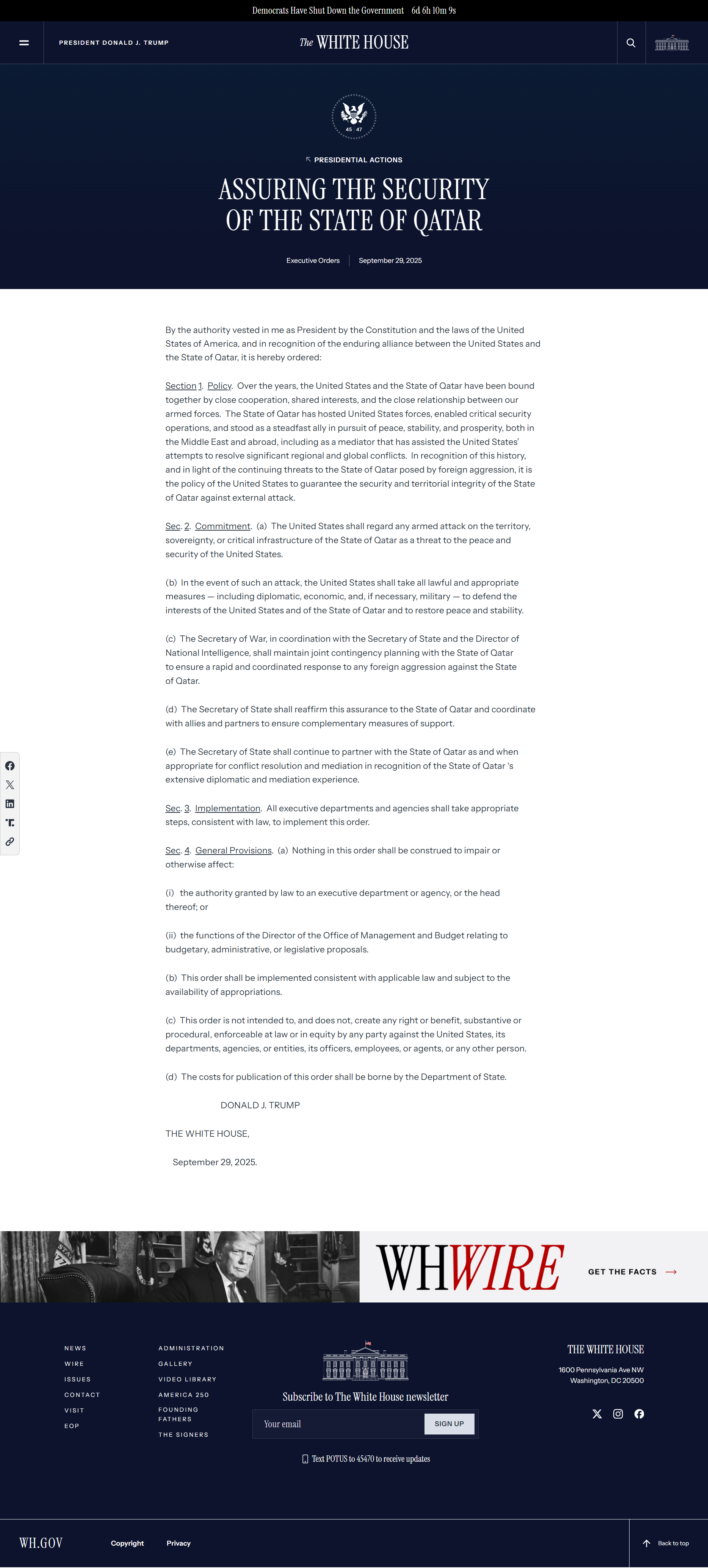 Original Url: https://www.whitehouse.gov/presidential-actions/2025/09/assuring-the-security-of-the-state-of-qatar/